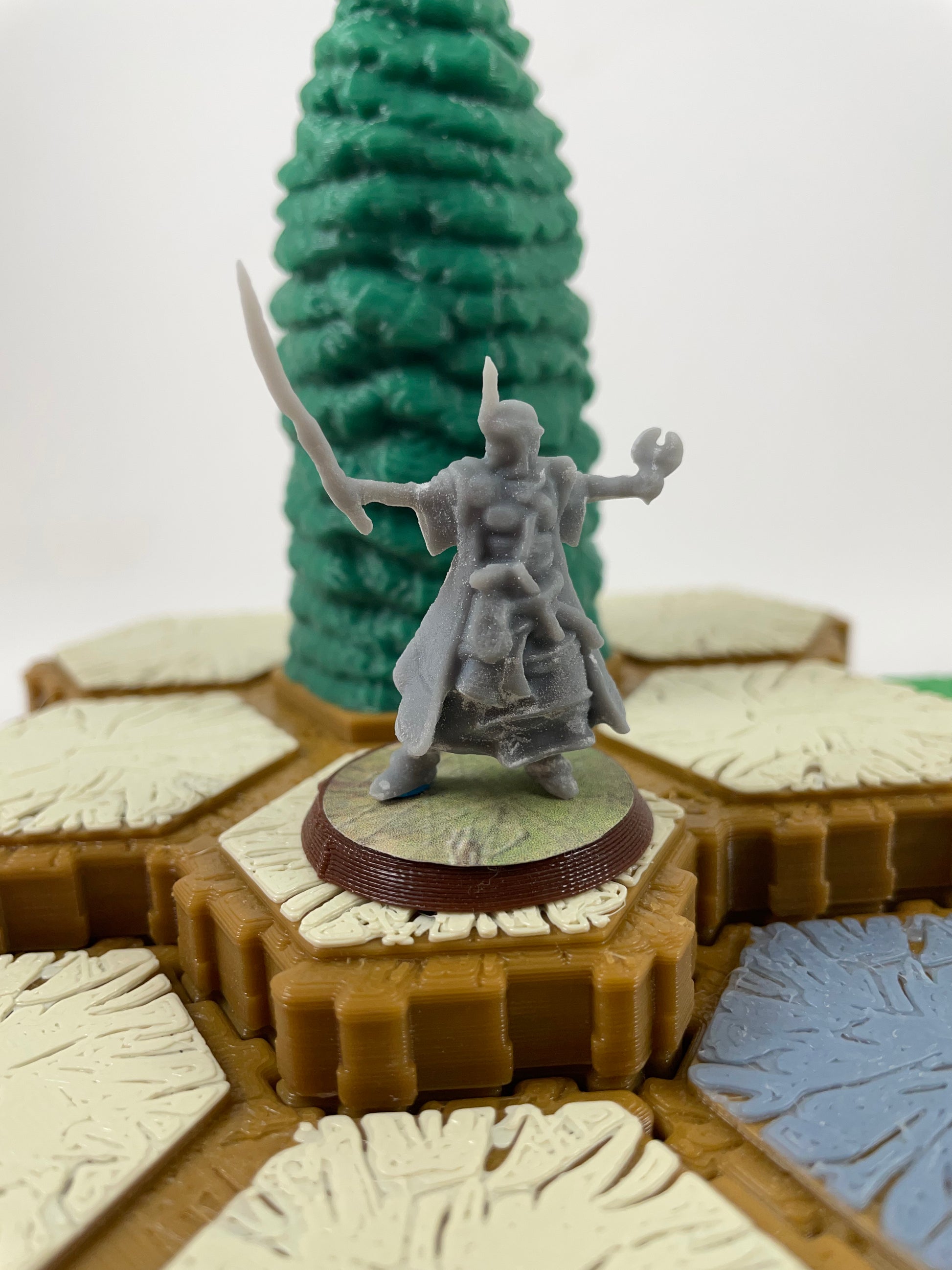 Resin 3D printed minatures for the Classic game Heroscape. The Resin is a tough ABS like blend to reduce fragility slightly. The brown bases are 3D printed with FDM filaments. The stickers are a premium Matte (Non-Gloss) Sticker material and are precisely cut with a CNC machine. The minatures, bases, and stickers are sent unassembled. An extra sticker is included with each squad.