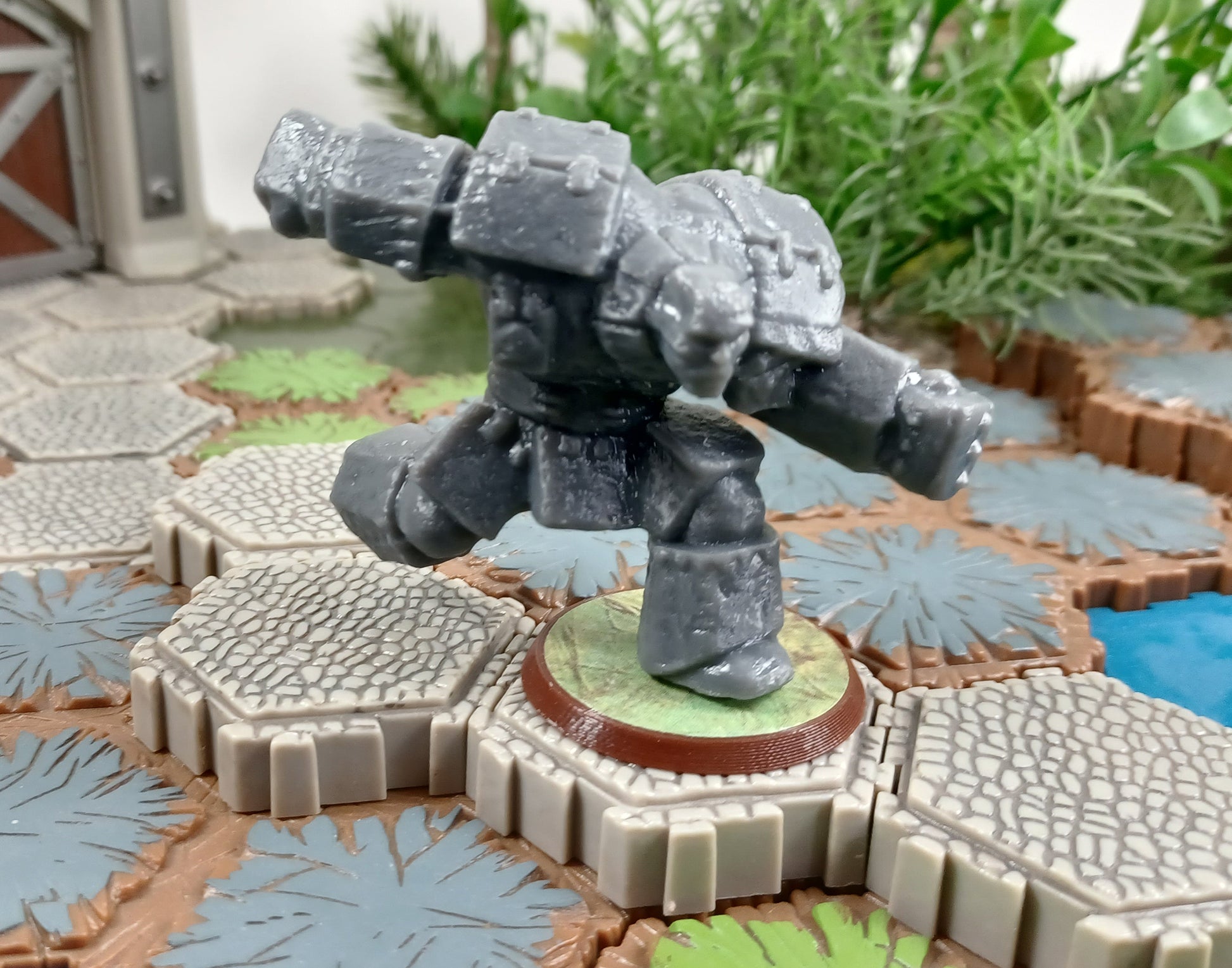 Resin 3D printed minatures for the Classic game Heroscape. The Resin is a tough ABS like blend to reduce fragility slightly. The brown bases are 3D printed with FDM filaments. The stickers are a premium Matte (Non-Gloss) Sticker material and are precisely cut with a CNC machine. The minatures, bases, and stickers are sent unassembled. An extra sticker is included with each squad.