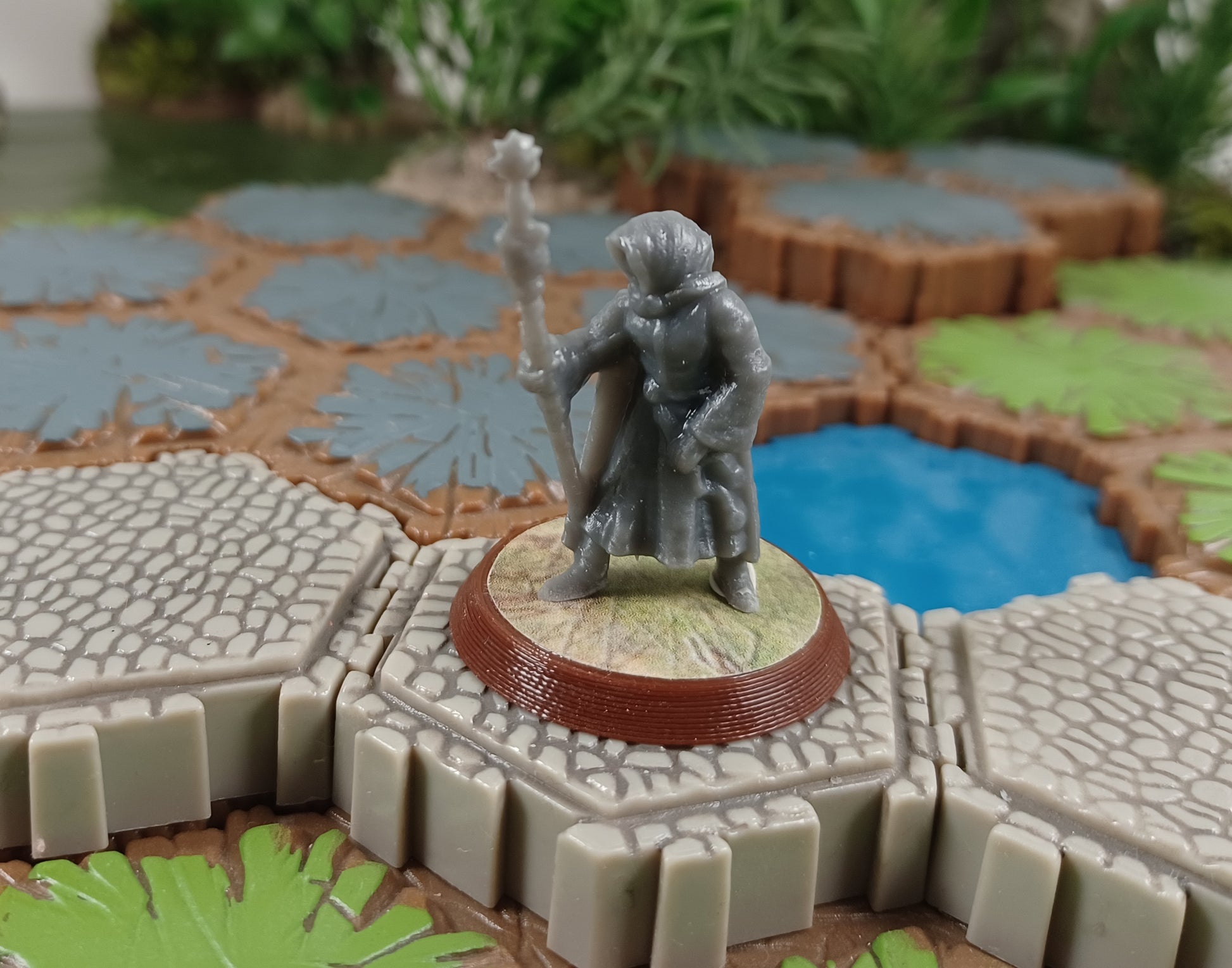 Resin 3D printed minatures for the Classic game Heroscape. The Resin is a tough ABS like blend to reduce fragility slightly. The brown bases are 3D printed with FDM filaments. The stickers are a premium Matte (Non-Gloss) Sticker material and are precisely cut with a CNC machine. The minatures, bases, and stickers are sent unassembled. An extra sticker is included with each squad.