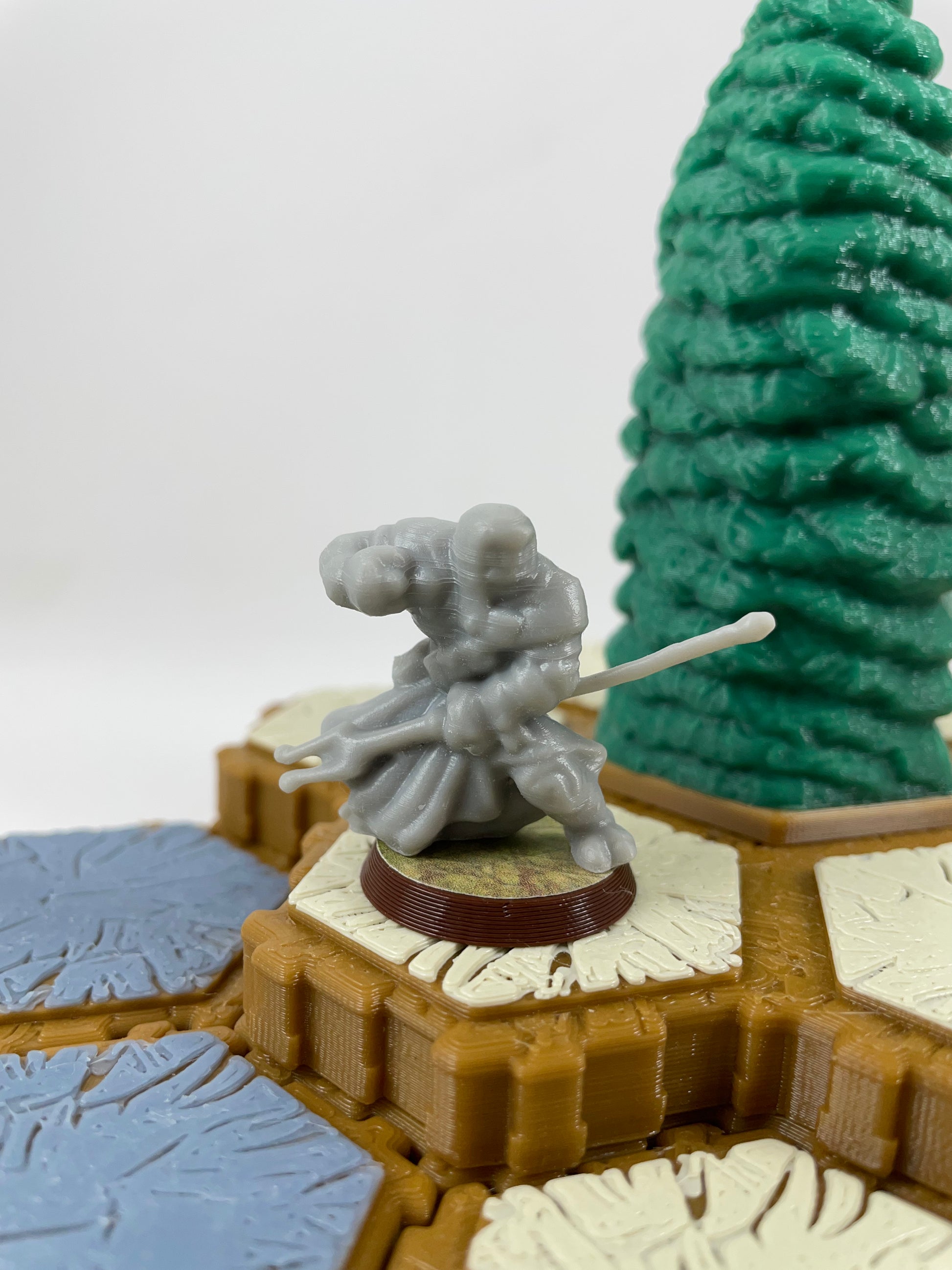 Resin 3D printed minatures for the Classic game Heroscape. The Resin is a tough ABS like blend to reduce fragility slightly. The brown bases are 3D printed with FDM filaments. The stickers are a premium Matte (Non-Gloss) Sticker material and are precisely cut with a CNC machine. The minatures, bases, and stickers are sent unassembled. An extra sticker is included with each squad.