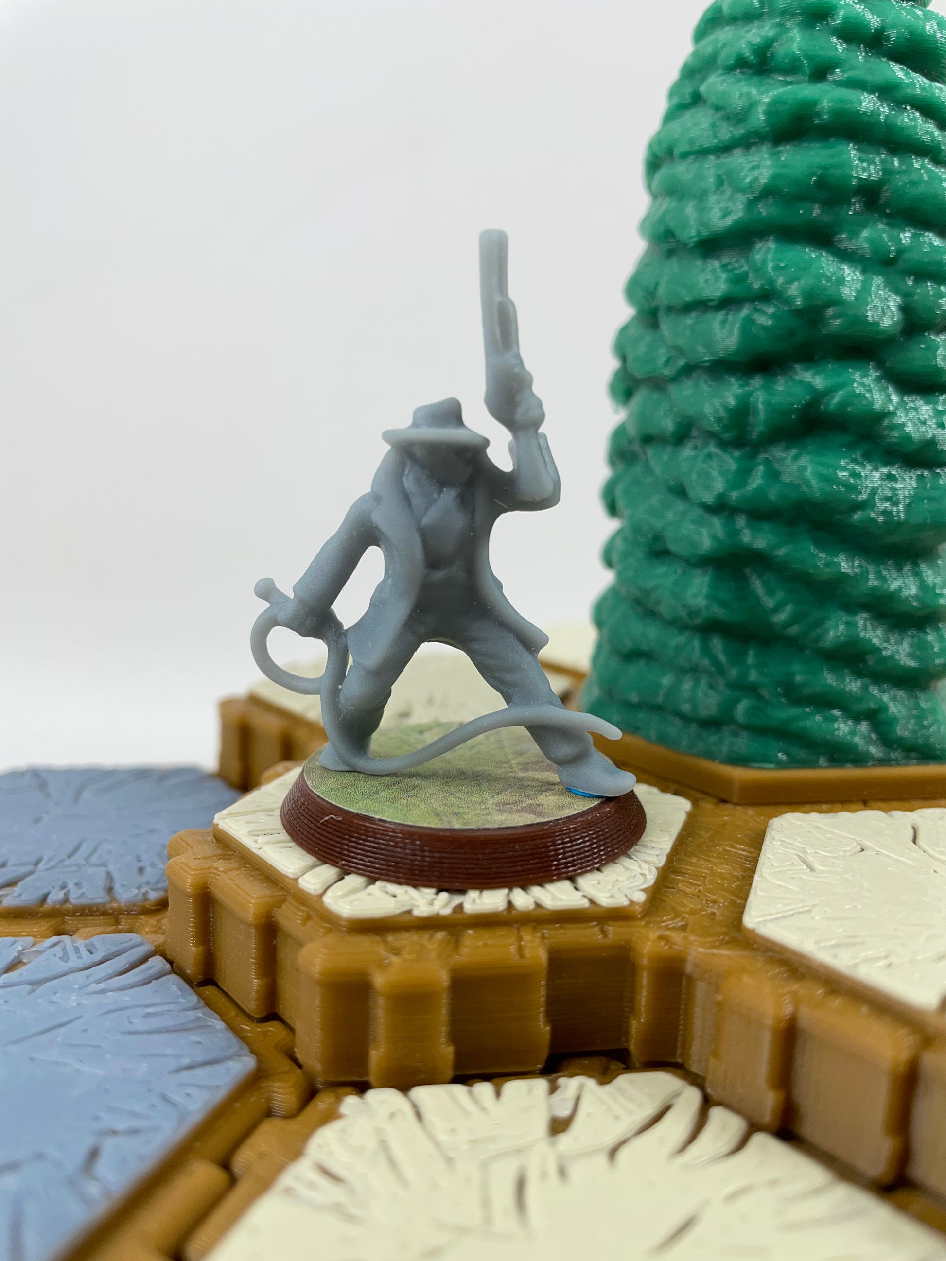 Resin 3D printed minatures for the Classic game Heroscape. The Resin is a tough ABS like blend to reduce fragility slightly. The brown bases are 3D printed with FDM filaments. The stickers are a premium Matte (Non-Gloss) Sticker material and are precisely cut with a CNC machine. The minatures, bases, and stickers are sent unassembled. An extra sticker is included with each squad.