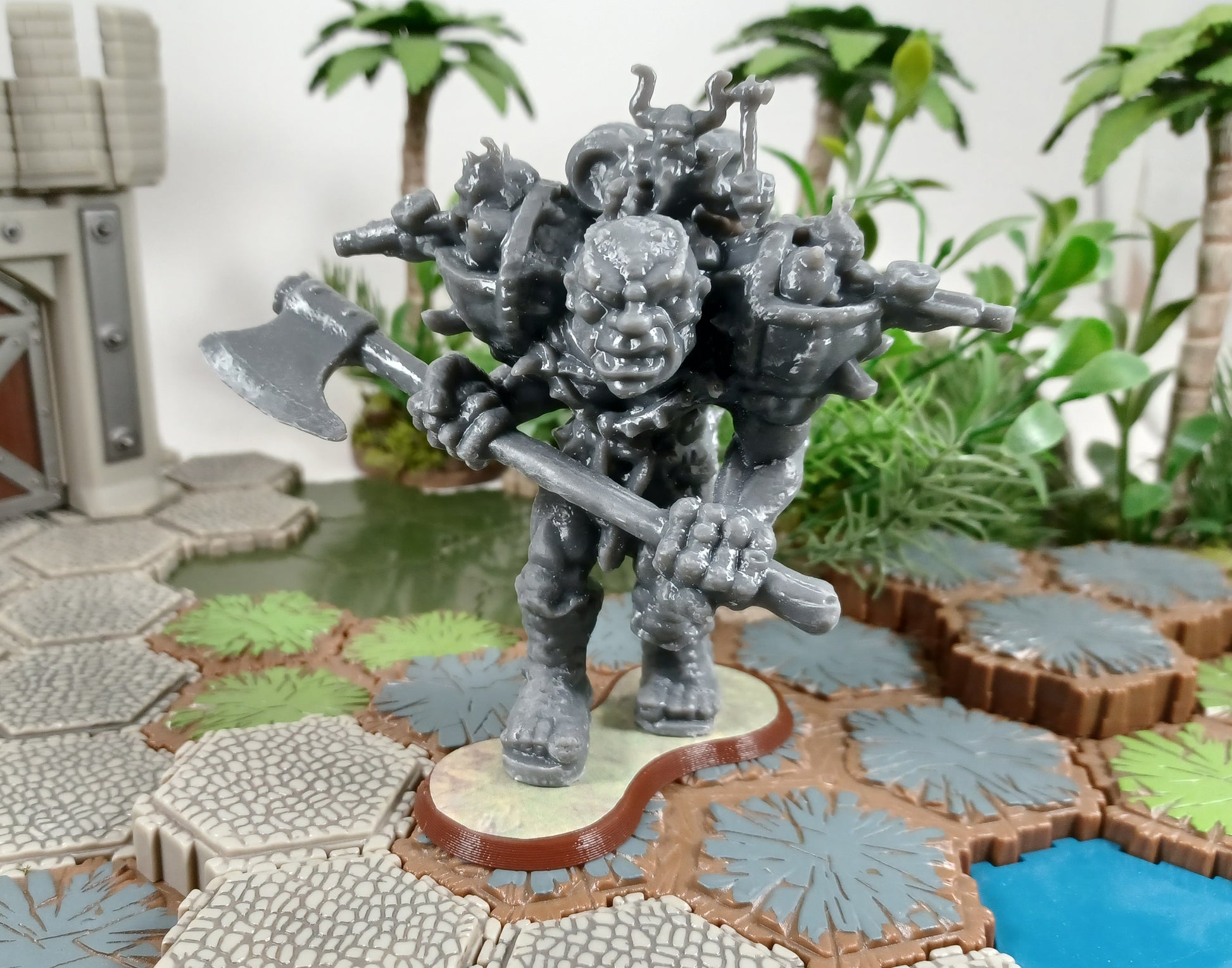 Resin 3D printed minatures for the Classic game Heroscape. The Resin is a tough ABS like blend to reduce fragility slightly. The brown bases are 3D printed with FDM filaments. The stickers are a premium Matte (Non-Gloss) Sticker material and are precisely cut with a CNC machine. The minatures, bases, and stickers are sent unassembled. An extra sticker is included with each squad.
