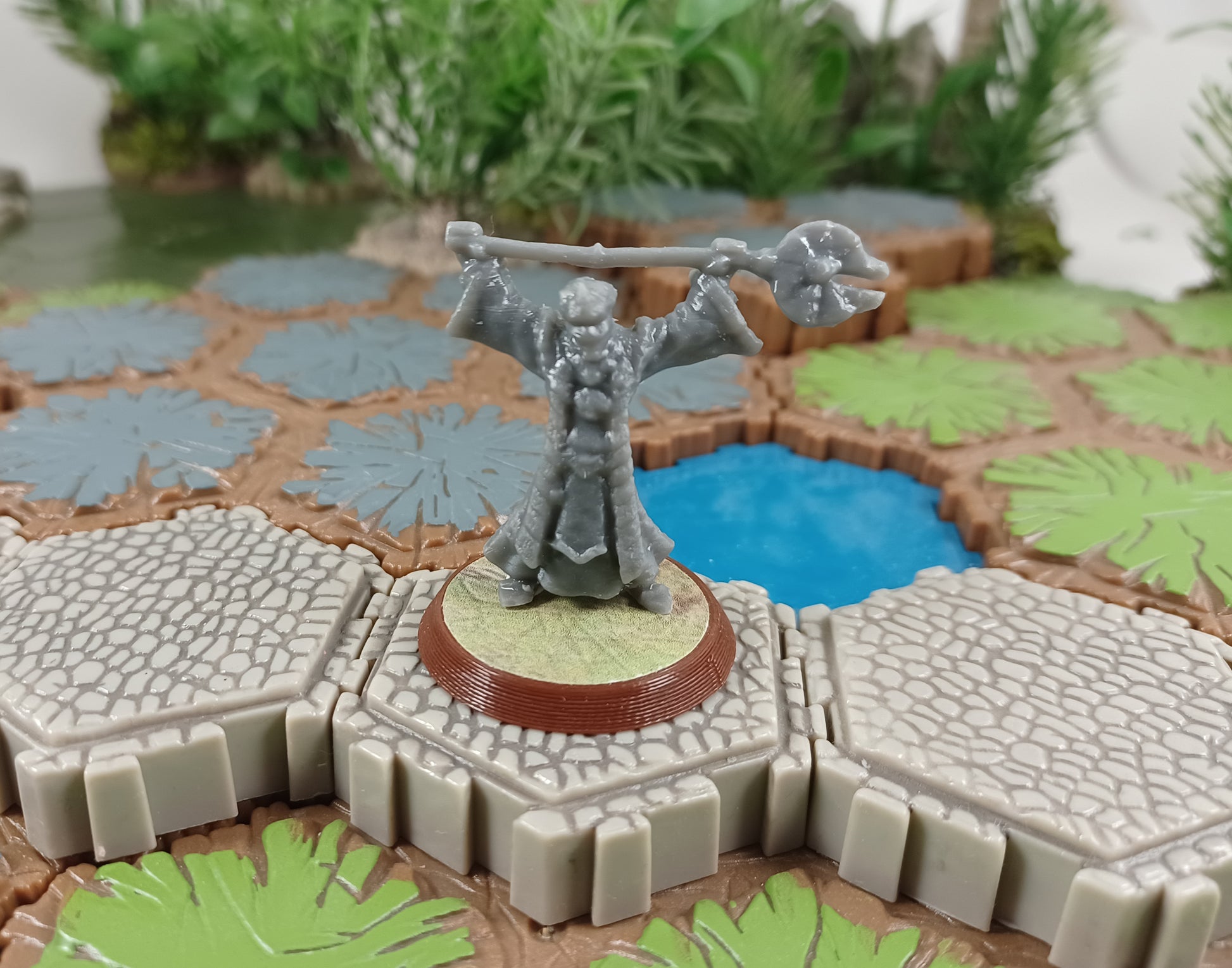 Resin 3D printed minatures for the Classic game Heroscape. The Resin is a tough ABS like blend to reduce fragility slightly. The brown bases are 3D printed with FDM filaments. The stickers are a premium Matte (Non-Gloss) Sticker material and are precisely cut with a CNC machine. The minatures, bases, and stickers are sent unassembled. An extra sticker is included with each squad.