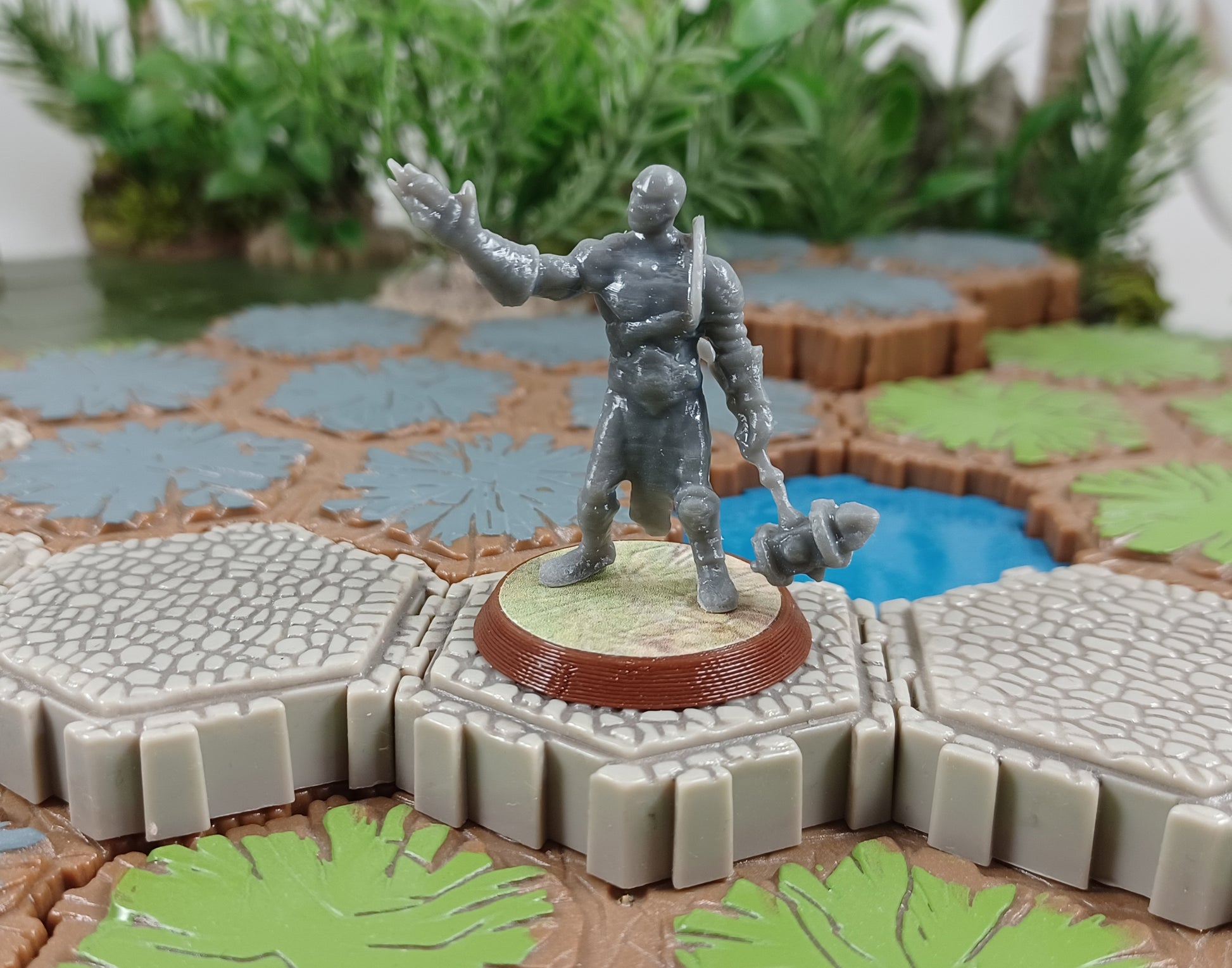 Resin 3D printed minatures for the Classic game Heroscape. The Resin is a tough ABS like blend to reduce fragility slightly. The brown bases are 3D printed with FDM filaments. The stickers are a premium Matte (Non-Gloss) Sticker material and are precisely cut with a CNC machine. The minatures, bases, and stickers are sent unassembled. An extra sticker is included with each squad.